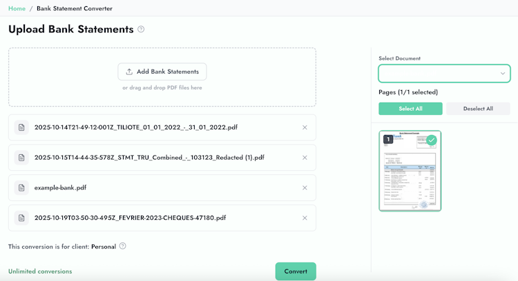 The system offers a set of features designed to streamline financial document processing workflows. Its proprietary Zera AI model has been trained on millions of financial documents to recognize accounting terminology, transaction patterns and varied statement formats with exceptional precision. Smart extraction capabilities preserve all transaction details and categories while automatically handling multi-page statements. The platform provides automatic categorization of transactions, error detection and a verification system that flags items for review. Extended functionality covers invoice processing, check processing with MICR and handwriting recognition and the handling of financial statements such as balance sheets and profit and loss documents. A client management workspace centralizes all client documents, tracks conversion history and delivers insights on processing activity with no limits on client accounts.