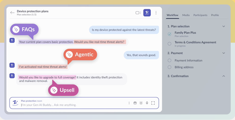 Zingly Rooms transform fragmented customer journeys into centralized, digital hubs where interaction history, documents, media, and updates are accessible to both customers and agents. Zingly's Agentic AI Buddy provides autonomous transactional support, handling customer inquiries without human intervention. For agents, Agent Copilot delivers real-time assistance, suggesting next best actions, generating interaction summaries, and ensuring responses align with compliance and brand guidelines.