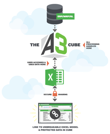 It can be used to import data from the company’s ERP, MRP, or GL tool automatically. Spreadsheets are safely accessible to staff members, and data is protected in the A3 Cube. Security permissions are based on the account holder’s preferences.
