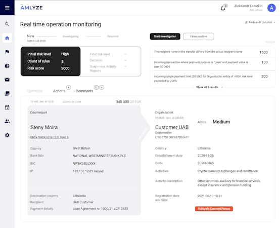 AMLYZE is a software-as-a-service (SaaS) anti-financial crime solution that offers various modules for real-time and retrospective transaction monitoring, customer risk scoring, case management, and sanctions screening. It has brought together some of the best technical, regulatory, product, and supervisory experts to help its clients grow businesses while ensuring that risk exposure is well mitigated.