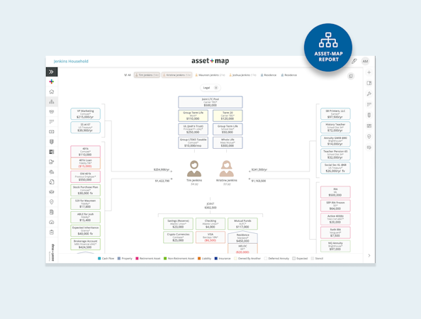 Asset-Map is a visual financial planning software platform that enables financial advisors to present complex client data through interactive one-page diagrams. The platform serves professionals in broker-dealer operations, registered investment advisory firms, hybrid RIA models, and bank and credit union environments. Asset-Map has been adopted by thousands of advisors worldwide and has captured the financial profiles of millions of individuals and trillions of dollars in instruments, establishing a shared framework for client conversations.