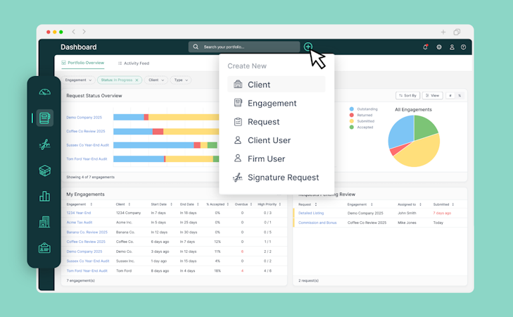 AuditDashboard is perfect for projects that are done remotely, involve multiple people, or have long lists of requests. Import request lists from Excel, provide real-time visibility on progress, notify clients of pending items, and initiate e-signature requests all from one centralized platform.