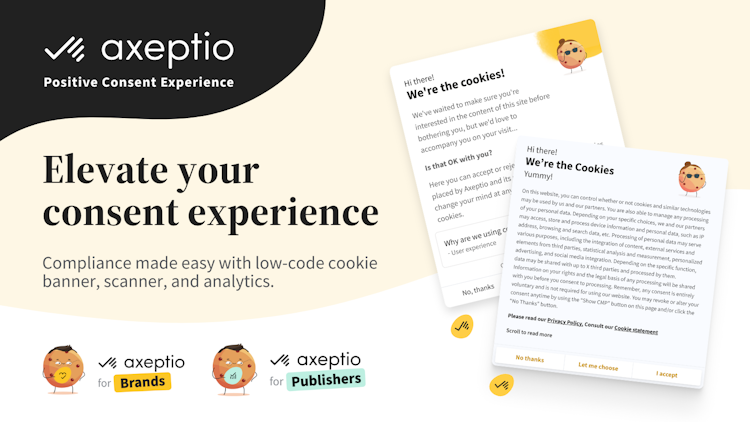Axeptio is a cloud-based tool that helps companies achieve privacy compliance while preserving a great UX on their website. It provides a fully customizable cookie widget that connects seamlessly to the Tag Management system and installs in minutes on the website. With advanced features like Information steps, granular consent, contextual consent wall, and detailed analytics about the user interaction, it is a complete no-code consent widget.