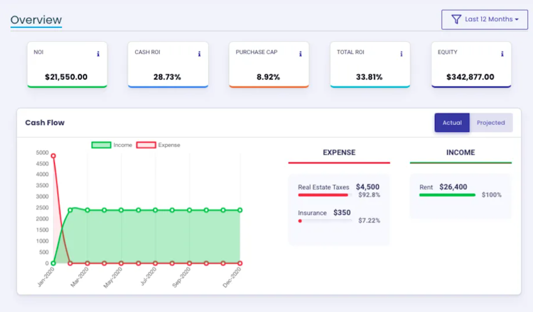 BetterCapital.us is a real estate investment portfolio that enables businesses to manage and track investment performance in real-time. The built-in dashboard allows staff members to monitor key performance metrics, such as cash ROIs, equity, expenses, and income.