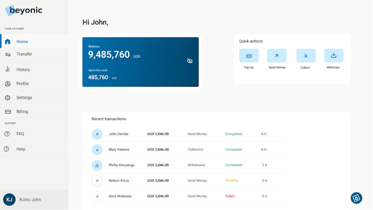Beyonic’s user interface