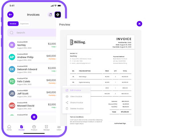 • Get Paid Faster: Professional, clearly formatted invoices with real-time payment status tracking help reduce payment delays. Automated reminders and recurring invoice features keep your cash flow consistent without manual follow-up.