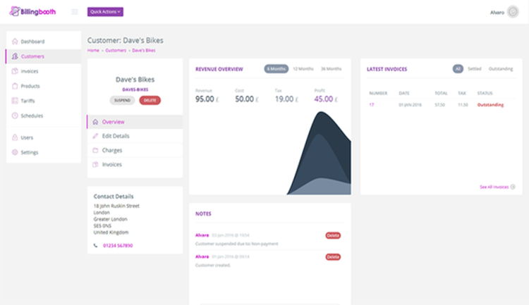 Billingbooth is a cloud based accounting management solution that enables the automated creation, delivery, and analysis of the billing and invoicing details of an organizations customers. The product offers features such as setting flexible tariffs and invoices for a customer; fixing differential or recurring charges for the users that are set at different intervals; creating and delivering invoices through emails or in a downloadable format from the web app., and setting customized taxation rates for customers across different geographies or jurisdictions.