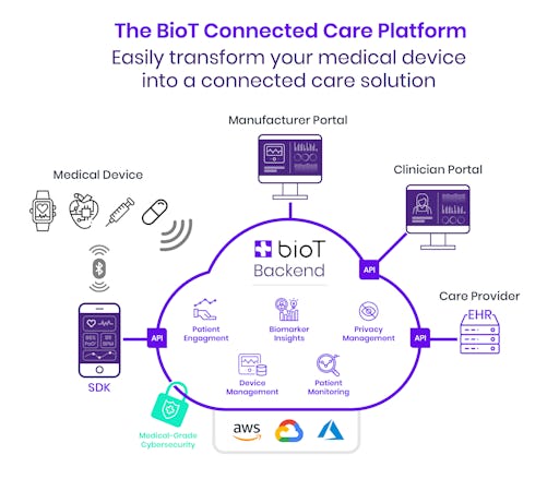 BioT’s connected care platform provides remote patient analysis and monitoring, secure device connectivity, billing, digital patient engagement, and operations management.