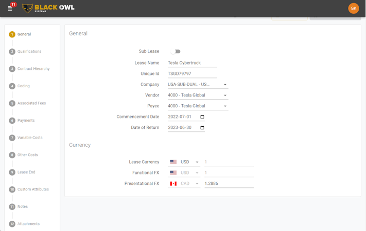 Black Owl is a lease accounting software that helps businesses in the financial sector record, reconcile, and manage leases for both lessee and lessor. The platform enables managers to ensure compliance in accordance with ASC 842 and IFRS 16 standards.