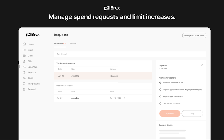 Brex is a finance platform that helps businesses control and manage spend. From corporate cards and banking to expense management and bill pay, it provides a comprehensive suite of tools to automate financial processes and improve the strategic impact of finance teams.