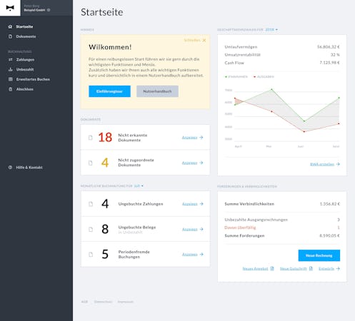 BuchaltungsButler is cloud-based software used across industries for digital accounting. The basic functions include intelligent bookkeeping and account assignment, digitized receipt and payment management, an invoicing program, and a dashboard which provides an evaluation and overview of important key figures. The program offers an easy way to get started, because more than 80% of the bookkeeping is automated during the learning phase.