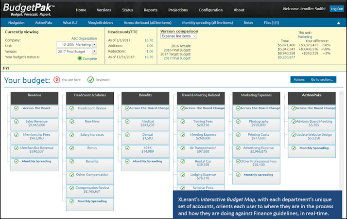XLerant offers a full suite of modules built into BudgetPak including expense planning, revenue planning, headcount planning, asset planning, forecasting and long-range projections as well as approval workflow, what-if scenarios, scenario modeling, out of the box reporting, variance reporting, and custom reports. A unique feature called ActionPaks allows users to budget for department-specific or organization-wide projects and initiatives.