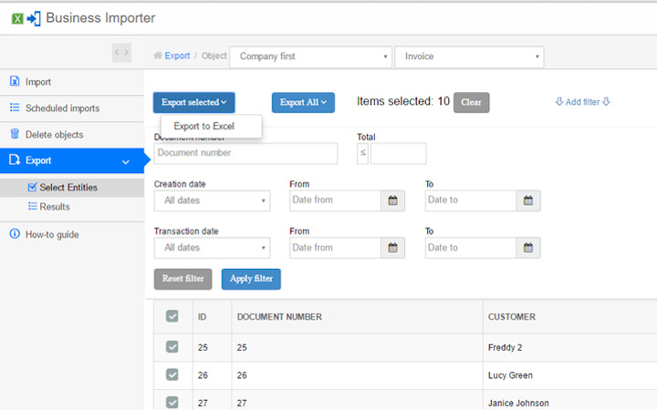 Business Importer is a cloud-based and on-premise solution designed to help enterprises manage processes related to transactions import, export, information update, and more across various accounting applications. The platform lets managers create custom fields to handle credit memos, purchase and sales orders, receipts, and invoices.
