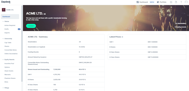 Capdesk from Carta is a private equity and employee share scheme management platform that helps private companies distribute ownership amongst employees. It can be used by early-stage and growth businesses to help them manage employee share grants and streamline equity plans. The cloud-based platform also provides the tools to help businesses report their private equity and shares activity to financial authorities, whilst ensuring compliance with data privacy and tax regulations.