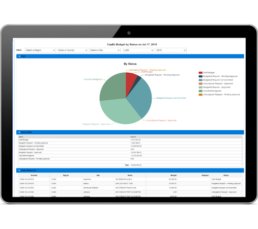 Track and Audit CapEx requests from inception to completion. View by Region, Country or site.