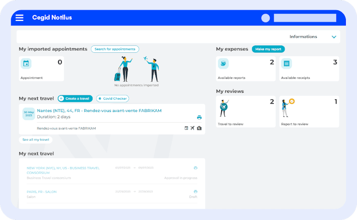 Cegid Notilus also simplifies the organization of employee travel worldwide and manages vehicle fleets.