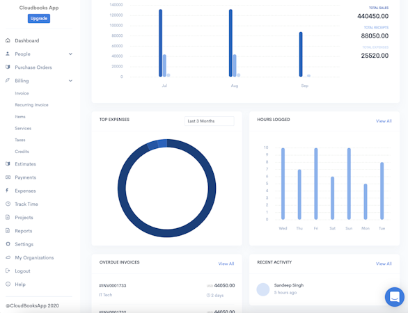 CloudBooks helps users to schedule recurring billing for regular projects and send bills to clients on completion of the billing period. Detailed reports are provided on payment collection, profit and loss statements, and project expenses, to help users analyze monthly or quarterly business earnings. The software tracks unpaid and partially paid invoices, and sends reminders and email notifications to clients to make their payments.