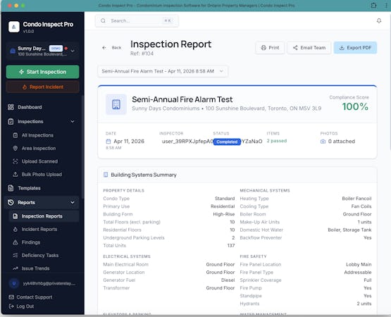 Inspection management software for Ontario condos