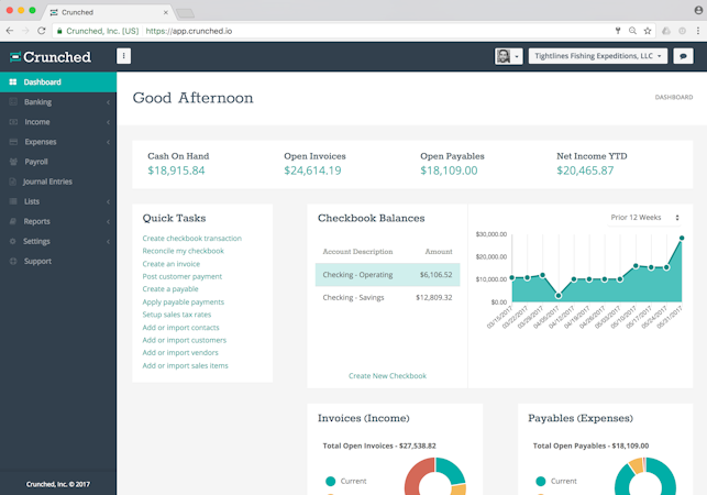 For expense management, Crunched provides a robust accounts payable system that allows for viewing aging reports, setting memorized and recurring transactions, and queueing expense payments.