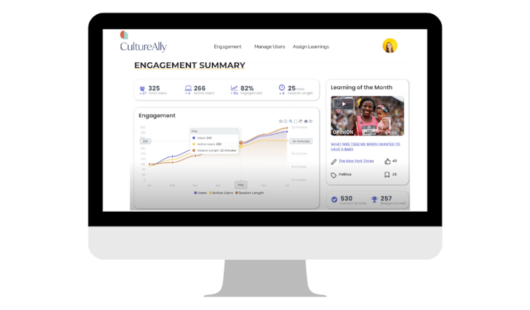 CultureAlly is a cloud-based DEI (Diversity, Equity & Inclusion) solution, which helps businesses in automotive, retail, consumer services, entertainment, and other sectors manage employee learning programs. The platform offers various features such as content sharing, progress tracking, online quizzes, reward management, sentiment analysis, engagement monitoring, and demographic data analysis. CultureAlly also facilitates third-party integration with various applications including Slack and Microsoft Teams.