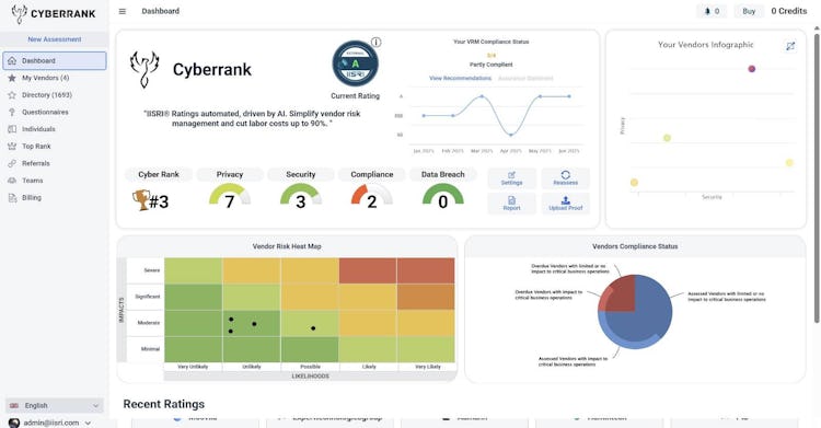 CyberRank is a vendor risk management system that provides comprehensive security ratings and cyber rankings for organizations worldwide. The platform performs thorough analyses of DNS records and autonomous system numbers to identify digital footprints, detect subdomains using advanced scanning techniques, and map IP ranges through reverse DNS lookups. Its capabilities enable organizations to gain insights into potential vulnerabilities, data breaches, and security recommendations.