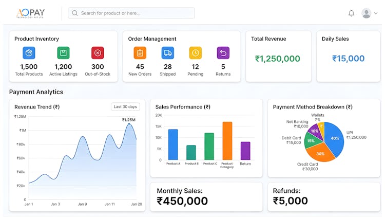AOPAY Best Ecommerce Software is designed to help businesses create, manage, and scale online stores efficiently. It allows merchants to sell products and services online through a user-friendly platform that supports product catalog management, secure payment processing, inventory control, order management, and customer engagement tools.