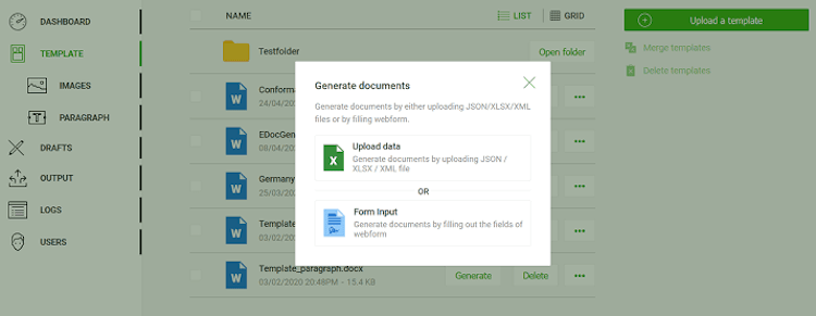 EDocGen is a cloud-based document generation platform, that enables businesses to create of PDF and Word documents from a wide range of data sources including databases, enterprise applications, XML, Excel, and JSON data. It supports all modes of document generation including on-demand, bulk, and interactive.