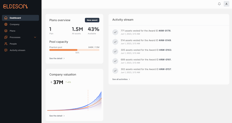 Eldison is an ESOP platform that allows businesses to implement and manage employee equity in one place. The true differentiators of this platform are its in-app standard legal documents, pool allocation feature, digital signing, employee portfolio and more.