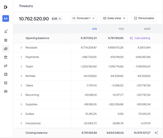 Short, medium, and long-term liquidity projections connected to ERP and accounting systems. Monitor our budget and plan scenarios in an agile way.
