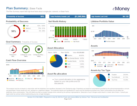 eMoney Advisor’s user interface