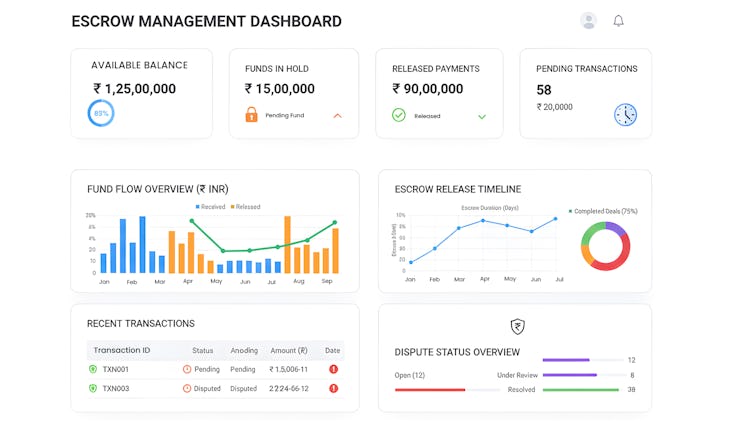 Whether used by online marketplaces, freelance platforms, real estate transactions, or high-value B2B dealings, our scalable ESCROW solution improves trust, minimizes payment-related risks, and streamlines the financial workflow, making it an essential tool for secure transactions in the digital economy.