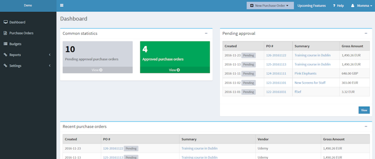 Expeni is a purchasing and procurement solution for small to medium sized companies that want to control their company spend, and eliminate paper-based workflows. The platform helps organizations simplify the purchase order management process with a one-click approval process. Employees are able to issue purchase orders from existing POs, attach invoices, and set up automatic email notifications to notify approvers.
