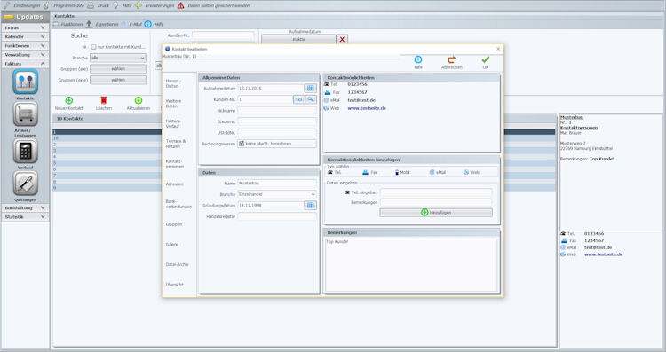 The program’s modular structure allows users the freedom to deploy the software according to their company's particular needs. The extension modules include digital solutions for accounting and a till for the direct processing of cash payments, as well as interfaces for DATEV, ZUGFeRD, and eBay applications.