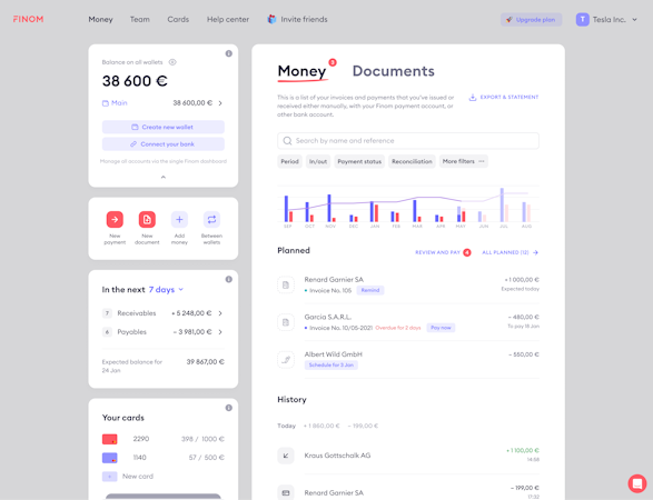 Finom consolidates payment processing, invoicing, and financial management, providing a unified solution for businesses of all sizes, from freelancers and start-up owners to small business teams and corporates. With a dedication to data and funds security, Finom incorporates innovative tools to empower entrepreneurs, leading them to success in the modern business landscape.