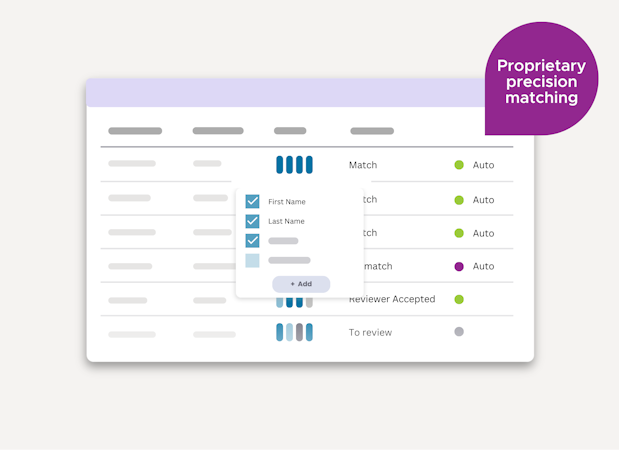 As one of the only compliance tools with built-in data quality, we can help you assess and ensure your data is match-ready for compliance.