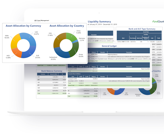 FundCount's portfolio & partnership accounting software tracks, analyzes and reports the value of complex investments across portfolios. An integrated multicurrency G/L and automated workflow tools, including direct feeds with brokers/custodians, improve operational efficiency. The software supports a wide range of asset types and portfolio measurement methodologies. Combined with flexible, on-demand client reporting, FundCount brings speed, accuracy and analytical insight to your firm.