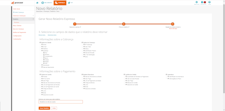 Gerencianet’s user interface