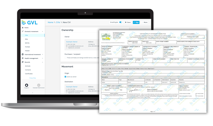 Powered by a built-in rules engine, the cloud-based GlobalVetLink platform helps users keep track of state, federal, and international regulations, ensuring that all digital travel certificates are submission-ready. The platform is accessible from any device, anywhere, and offers the widest range of certificate and documentation use cases accepted by all state and provincial health offices, as well as the most comprehensive data coverage with the largest range of database fields. To further enhance convenience, GlobalVetLink provides an animal records manager and owner portal, allowing users and owners to access documentation and reducing the need for additional certificate writing and inquiries.