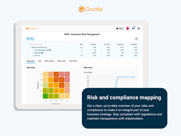 Granite is a rock-solid governance, risk management and compliance platform trusted by over 30,000 monthly users. Designed to enhance governance and fortify risk management, Granite offers a user-friendly platform that makes navigating complex risk landscapes a breeze.