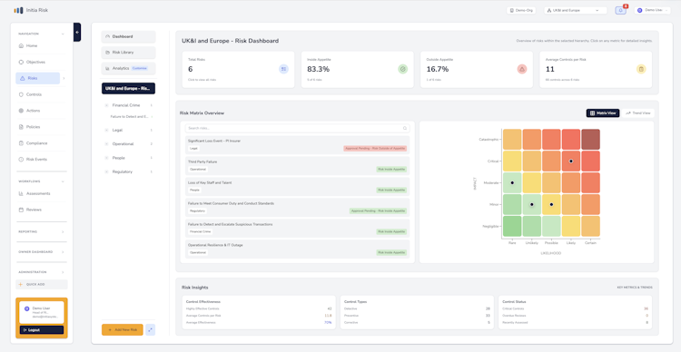 By automating RCSAs, reducing manual effort, and turning risk data into decision ready insight, Initia Risk helps organisations move beyond compliance driven risk management and embed risk into everyday decision making across the business.