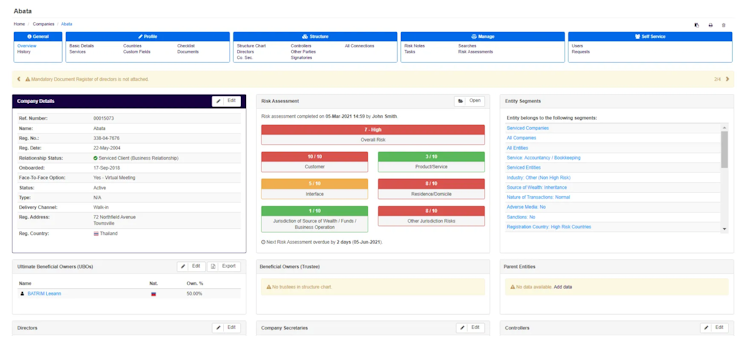 Comprehensive Dashboards & Alerts: Real-time visual insights and proactive alerts help teams prioritise tasks such as sanctions screenings, missing data, or expiring documents.
