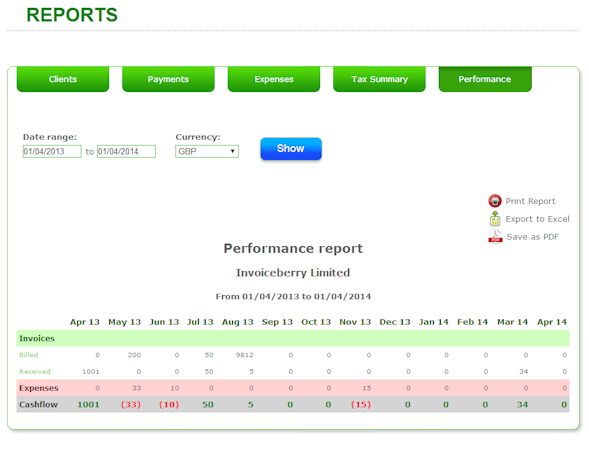 InvoiceBerry makes it easier for small businesses to stay on top of their finances. In addition to tracking payments and expenses, users can also track business performance through performance reports.
