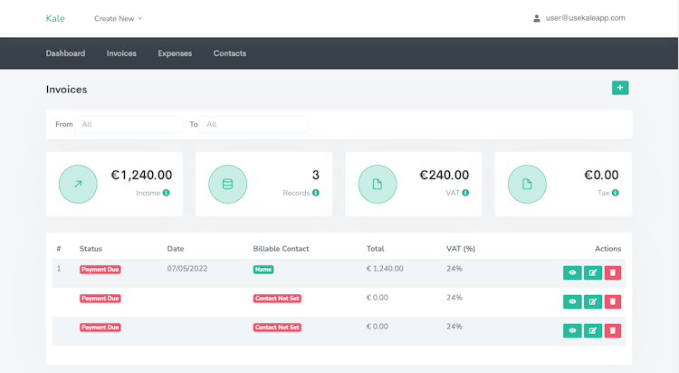 Kale developed by Localscope is a free tool for invoicing and expense management for freelancers and small businesses.