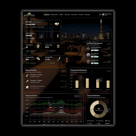 My Property Organiser delivers real time portfolio intelligence through an integrated dashboard that tracks return on investment, cash flow, and profit metrics across all properties. Capital appreciation and equity growth appear in dynamic visual charts supported by market analytics and nearby property comparisons. Short term let occupancy rates update continuously and automated income and expense categorization eliminates manual data entry and spreadsheet reliance. A secure document vault centralizes all property related documentation and a tenant and lettings overview feature ensures end to end visibility of rental arrangements. The equity insights functionality identifies refinancing options based on current property values and market conditions.