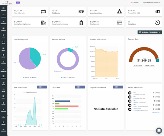 MYFUNDBOX offers an excellent and comprehensive dashboard, making it easy to handle one-off payments and subscriptions.