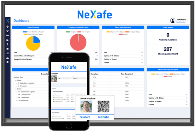 NeXafe is a cloud-based compliance and occupational health and safety (OHS) solution designed to streamline and automate workplace compliance for businesses. The platform offers a range of features to manage workers, contractors, and equipment, including all necessary documents, forms, and competencies, accessible through a desktop and mobile application.