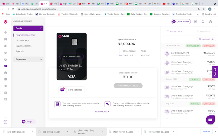 The one thing that tops all of this is the Founder Card that they have provided me with which can be used as both credit and debit card. Wherein I could use the money in my account, but I also get a credit limit for my expenses.