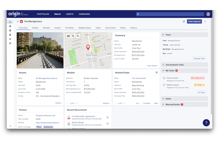 Origin by Altrio is a powerful real estate deal management and analytics platform that delivers the insights you need to close the right deals, on the right terms.