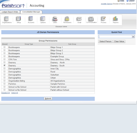 ParishSOFT Accounting’s user interface