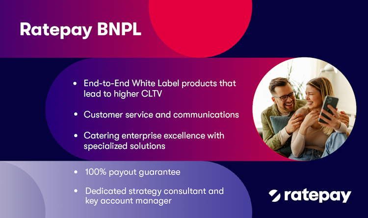 - Customer care, communications, and payment operations are carried out by Ratepay in the name of the merchant in their look & feel